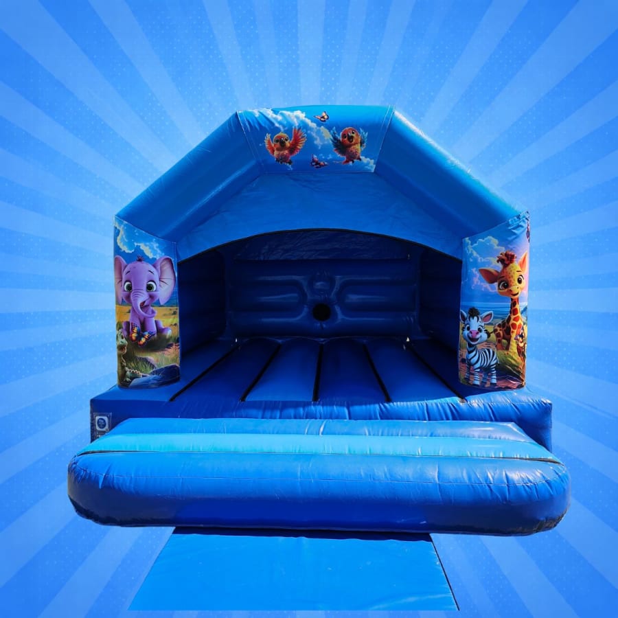 Step into a world of colour and adventure with our Jungle Animation Bouncy Castle Hire in Wakefield. Measuring 12 x 16ft, this vibrant inflatable features bold jungle graphics and striking blue tones, making it a standout centrepiece for birthday parties, school fairs and community events.