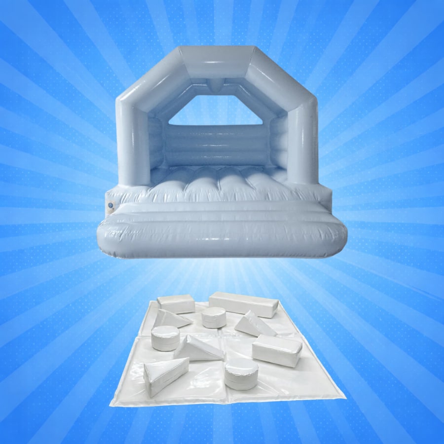 Pastel Blue Bouncy Castle & White Soft Play Hire in Wakefield